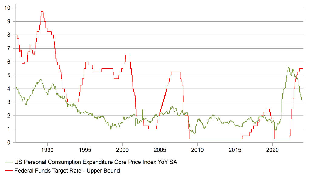 The other main economic data release this morning has been from the UK where the latest CPI report for December revealed firmer than expected inflation. The report revealed that headline inflation unexpectedly picked up to 4.0% in December up from 3.9% in November. It partially reverses the downside surprise provided by the prior CPI report for November. For Q4 as a whole headline inflation has averaged an annual rate of 4.2% which is still well below the BoE’s forecast from the November Quarterly Inflation report of 4.6%. Nevertheless, the stronger than expected reading for both core and services inflation in December at 5.1% and 6.4% are disappointing and will discourage the BoE from beginning to cut rates sooner. The UK rate market is not fully pricing in the first 25bps rate cut from the BoE until June. The hawkish repricing of the UK rate curve has contributed to the pound strengthening modestly this morning.