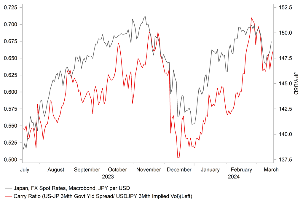 USD/JPY VS. CARRY ATTRACTIVENESS RATIO