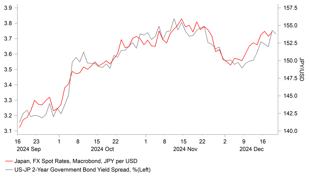 More importantly, Governor Ueda refrained from sending a strong signal that the BoJ is planning to hike rates at the next policy meeting on 24th January. He only added that there will be a certain amount of information available by the next meeting while emphasizing that the full picture on the wage trend will be clear in March or April. With Trump’s second term not starting until 20th January, the BoJ will not have much time to assess the impact of US policies by the next policy meeting. He finished off by saying that he can’t say if we’ll have enough info by the next policy meeting. Overall, the comments from Governor Ueda will push back expectations for the timing of the next BoJ rate hike from January to March. It has provided a green light for speculators to rebuild short yen positions and increases the likelihood that USD/JPY will rise back up toward year to date highs at just above the 160.00-level. A much weaker yen could then become a factor early next year that encourages the BoJ to hike rates sooner in January rather than wait until March. According to Bloomberg, the probability of a January hike has fallen to closer to 50:50 after today’s policy update.
