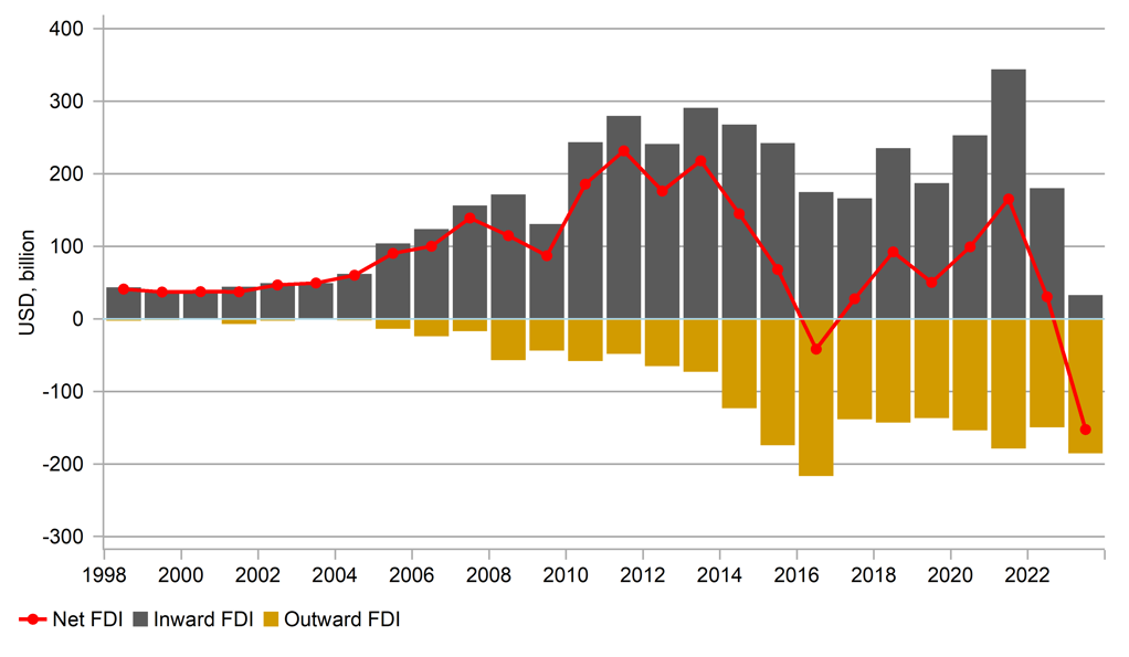 CHINA INWARD FDI IN 2023 COLLAPSES TO WEAKEST SINCE 1993
