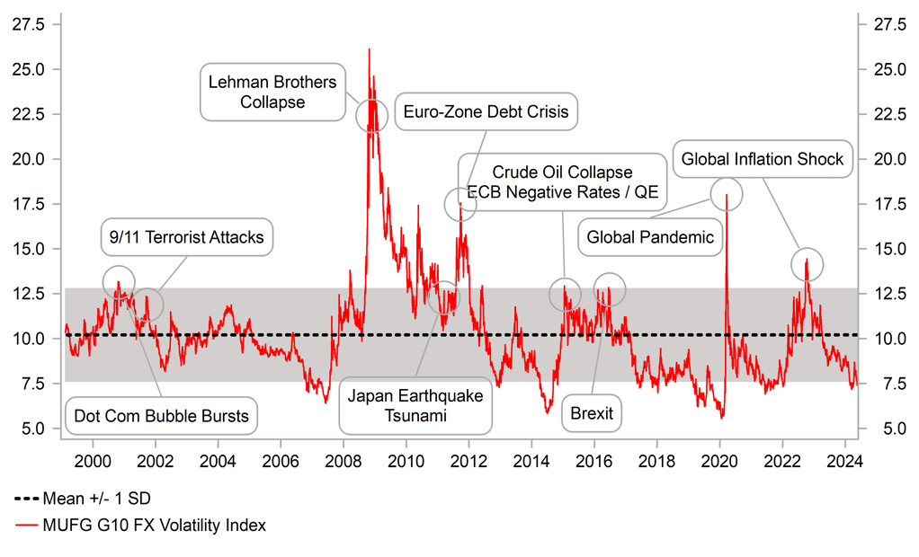 MUFG G10 FX VOLATILITY INDEX BACK BELOW 1STD DEV OF LT AVERAGE