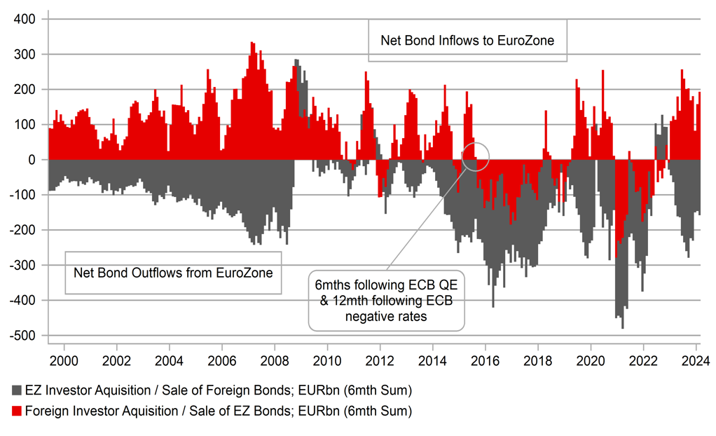 FOREIGN INVESTORS HAVE RETURNED TO EURO-ZONE BOND MARKETS FOLLOWING THE REMOVAL OF NEGATIVE RATES