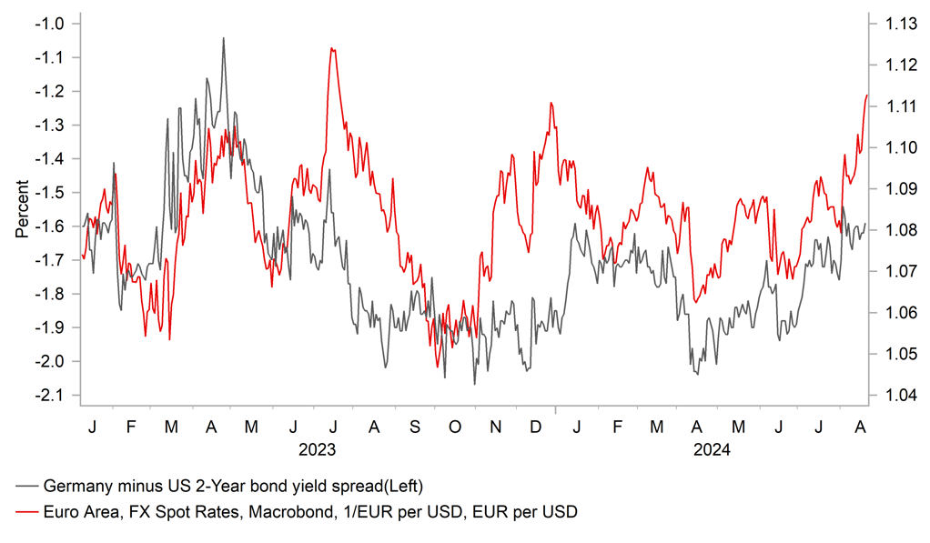 The move higher in EUR/USD continues to exceed our expectations and looking further ahead, while we will likely see some corrections back lower, the outlook remains more positive. We highlighted in the FX Daily Snapshot on Tuesday (here) that rate cut expectations over a 12mth period look excessive – the market implied expected real policy rate by mid-2025 is just 0.25% - and hence we see greater risks of rate cut expectations being removed which will act to provide EUR with further support.