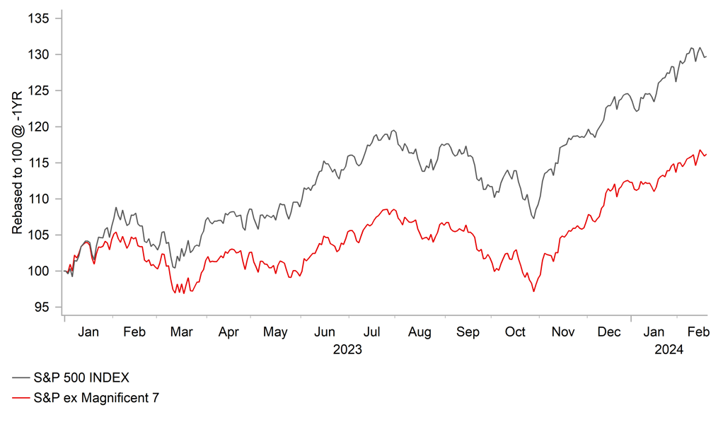 The other main development overnight was the release of the latest minutes from the January FOMC meeting. The minutes signalled that the Fed is cautious over cutting rates too soon with officials wanting to see more confirmation that slower inflation will be sustained. “Most” Fed officials “noted the risks of moving too quickly to ease the stance of policy” while emphasizing the “importance of carefully assessing incoming data in judging whether inflation is moving down sustainably to 2 percent”. In contrast, only a “couple” of officials emphasized downside risks associated with staying too tight for too long. Fed officials saw risks to inflation and employment as “moving into better balance but remained “highly attentive” to inflation. “some” officials noted that the risk that “progress to price stability could stall”, and “several” were concerned about financial conditions easing too much. The overall tone of the minutes appears better aligned with current US rate market pricing which is expecting the first rate cut to be delivered in June. While an earlier cut in May can’t be ruled out, the US rate is now pricing in only around 8bps of cuts. The hawkish repricing of the outlook for Fed policy and for other major central banks at the start of this year has not been sufficient to derail the rebound in global equity markets.