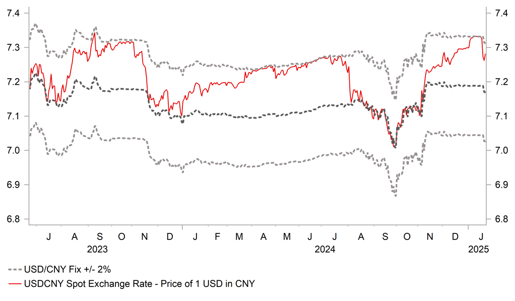 Trump did announce an investigation into whether China had kept to the terms of the Phase One trade deal signed during Trump’s first term in office but that process will take time. The 10% tariff mentioned yesterday would be in response to China’s role in fentanyl coming into the US from China via Canada and Mexico. For a tariff to be adopted so quickly no investigation process would take place and the Trump administration would likely use the International Economic Emergency Powers Act. The US dollar weakened ahead of this announcement by Trump and has only strengthened modestly in response. USD/CNY jumped and CNY is the clear underperformer in Asia FX today. The CSI 300 is down 1.0% and the Hang Seng is down close to 2.0%. The rest of Asian equity markets were helped by tech related stocks fuelled by the unveiling by Trump of an AI joint venture initiative that will see USD 100bn of initial investment led by Softbank, OpenAI and Oracle Corp. The positive risk appetite in equities is another factor curtailing the rebound of the US dollar.