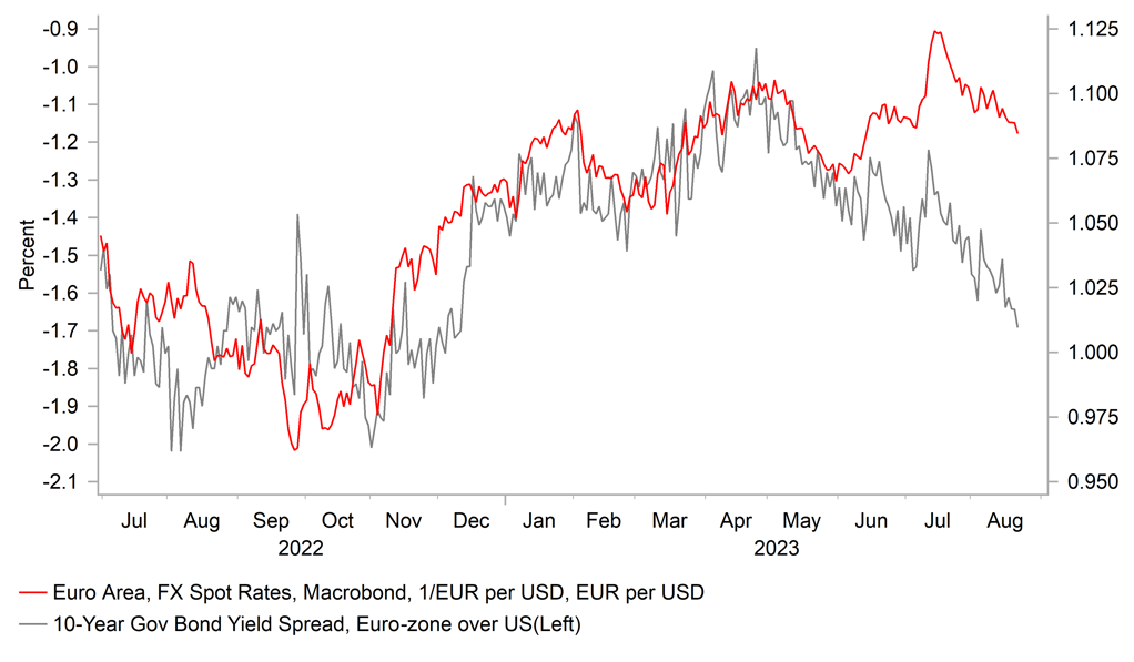The euro fell to a fresh low yesterday against the US dollar when it hit an intra-day low of 1.0833 with the pair moving closer to support from the 200-day moving average that comes in at around 1.0800. The euro has come under selling pressure against the US dollar over the past month as yield spreads have moved back in favour of the US, and there has been a clearer divergence between the cyclical performances of the eurozone and US economies. The 10-year yield spread between German and US government bonds was re-widened from around -1.4% at the start of July to closer to -1.7% as it moves back to levels that were in place towards the end of last year when EUR/USD was trading closer to parity than 1.1000. Economic data releases from the euro-zone have been surprising to the downside since May although have become less negative recently suggesting that the weaker outlook is now better priced in. Market participants will be watching closely today the release of the latest euro-zone PMI surveys for August to see if euro-zone economies have continued to lose growth momentum in Q3. Market participants have become less confident recently that the ECB will deliver another rate hike in September with around 16bps of hikes currently priced in for the 14th September policy meeting. The other main economic data release to watch out for today in the US will be the release of the 2023 Preliminary Benchmark Revision to Establishment Survey data. With the Fed at an important juncture in their tightening cycle and closing watching for evidence of slowing employment and wage growth, Fed policy expectations and the US dollar would prove sensitive if there are significant revisions to the employment data.