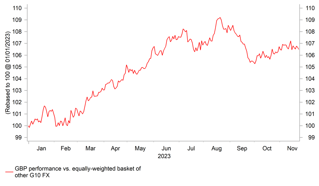 The main focus yesterday for UK financial markets was the release of the government’s autumn fiscal statement. It had more impact on the UK rate market than the pound. While there was limited impact on the pound, the fiscal give-aways have encouraged the UK rate market to scale back BoE rate cuts expectations for next year adding to the pushback from BoE officials this week against premature rate cut expectations. The UK rate market expects the BoE to wait a little longer than the ECB and Fed before cutting rates at the August MPC meeting next year, and has scaled back total cuts priced in by the end of next year to around 60bps. It compares to larger rate cuts priced in for the Fed and ECB by the end of next year of around 88bps and 85bps respectively. The higher risk of persistent inflation in the UK is making market participants relatively more cautious over pricing in a policy reversal from the BoE.