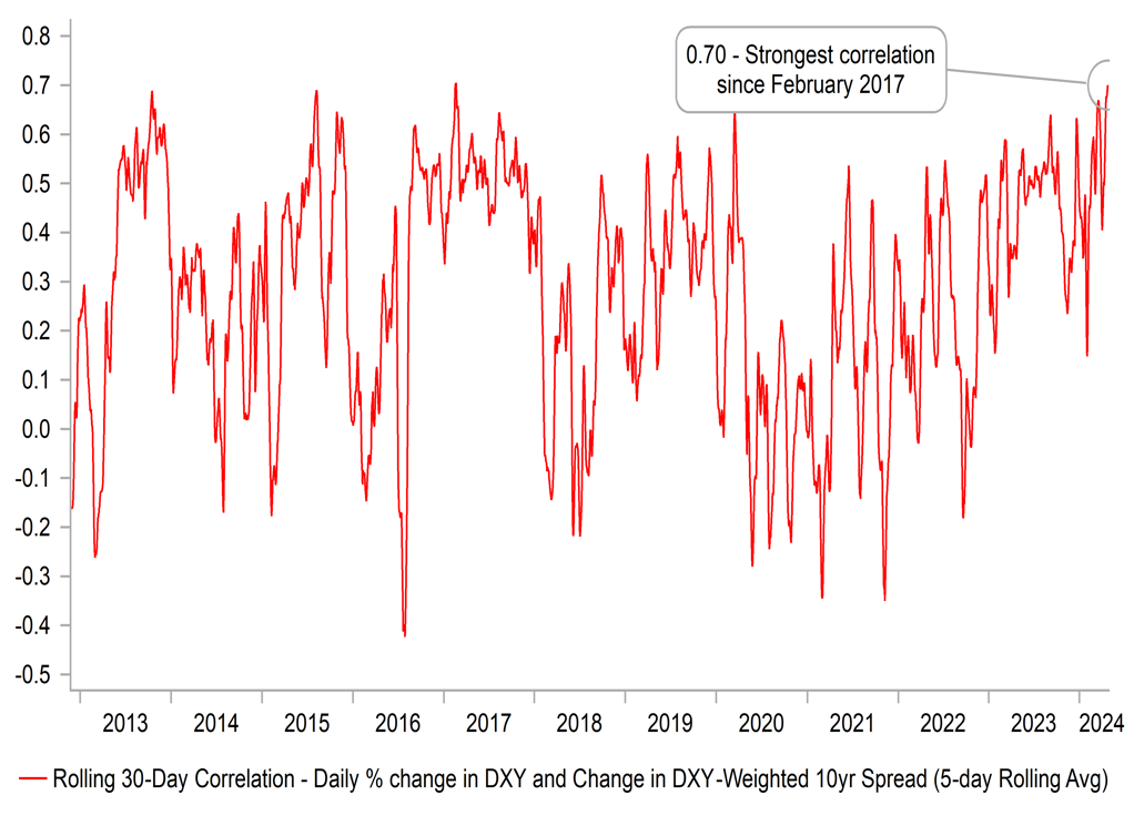 USD / 10YR YIELD CORRELATION HIGHLIGHTS CURRENT DRIVER OF USD STRENGTH