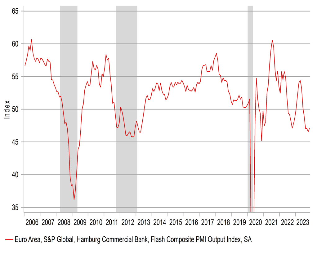 EURO-ZONE COMPOSITE REMAINS AT RECESSIONARY LEVELS