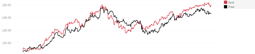 MUFG SHORT-TERM REGRESSION MODEL DIVERGENCE WITH SPOT – FAIR-VALUE IS AROUND 143.00