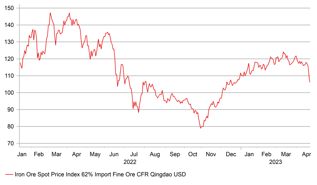 The disappointing price action for the KRW provides further evidence that China reopening trades are struggling to regain upward momentum this year. Asian currencies have on the whole failed to strengthen further against the USD even as it weakened more broadly. Even the release last week of the stronger activity data from China failed to provide a fresh catalyst for Asian currency strength. It was revealed that China’s economy rebounded more strongly than expected at the start of this year boosted by the release of pent up demand as COVID restrictions were eased. In response our research colleagues from Asia have revised higher their forecast for GDP growth in China this year (click here). Recent weakness in Asian currencies and the KRW could reflect in part geopolitical tensions between China and the US. According to the FT, the US has asked South Korea to urge domestic chipmakers not to fill gaps in the market in China if Beijing bans Idaho-based Micron from selling chips. At the same time, the sharp drop in the price of ore at the start of this week to its lowest level since late last year is casting fresh doubt on the strength of the recovery in demand from China. It follows on from comments last week from China’s National Development and Reform Commission (NDRC) that it would crack down on “unreasonable” price gains in the market and loo to use domestic ore and improve the use of scrap steel.