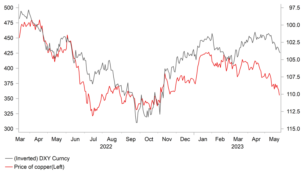 Recent developments prompted Fitch to place the United States’ AAA credit rating on negative watch yesterday. Fitch noted that increased political partisanship is hindering reaching a resolution to raise or suspend the debt limit despite the fast approaching x date (when the Treasury exhausts its cash position and capacity for extraordinary measures without incurring new debt). They still expect a resolution before the x-day, but believe the risks have risen that the debit limit will not be raised or suspended before the x-date and consequently that the government could begin to miss payments on some of tis obligations. Failing to make full and timely payments on debt securities is viewed as less likely than reaching the x-date, and he probability of debt default as such as considered very low. At the same time, Fitch noted that US government finances have recently underperformed their expectations on the back of weaker tax receipts and higher interest rates. The general government deficit is forecast to expand to 6.5% of GDP this year and 6.9% of GDP in 2024. We highlighted the worrying long-term path for US government finances in our 10 reasons for USD depreciation released yesterday (click here), although the US debt ceiling developments are clearly the reason for the decision to place the US credit rating on negative watch. The White House reacted to the announcement from Fitch by stating that “tonight’s warning underscores the need for swift bipartisan action …to avoid a manufactured crisis”.