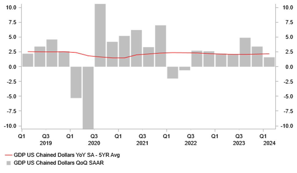 US GDP GROWTH DECELERATES FURTHER AND TO A LEVEL BELOW 5YR AVERAGE