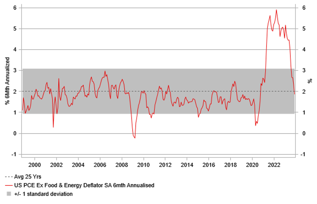 Recent comments from Fed officials that have attempted to pushback against rate cut speculation as soon as at the March FOMC meeting have had limited impact so far on market expectations. It has been hard for the Fed to pushback against expectations for earlier and deeper rate cuts next year when evidence continues to build that US inflation is slowing more quickly than expected even as economic growth has proven resilient. Investor optimism over a softer landing for the US economy was boosted further ahead of the holiday period by the release of the US PCE deflator report for November. The report provided further evidence that underlying inflation pressures continue to slow, and should give the Fed more confidence that inflation will return to their 2.0%. Over the last six months, the core PCE deflator which is the Fed’s preferred inflation gauge has increased by an annualized rate of just 1.9%. It marks a sharp slowdown from in the previous six months to the end of May when it had increased by an annualized rate of 4.5%. If inflation continues to slow at the start of next year, it will become harder for the Fed to justify keeping the policy at current restrictive levels.