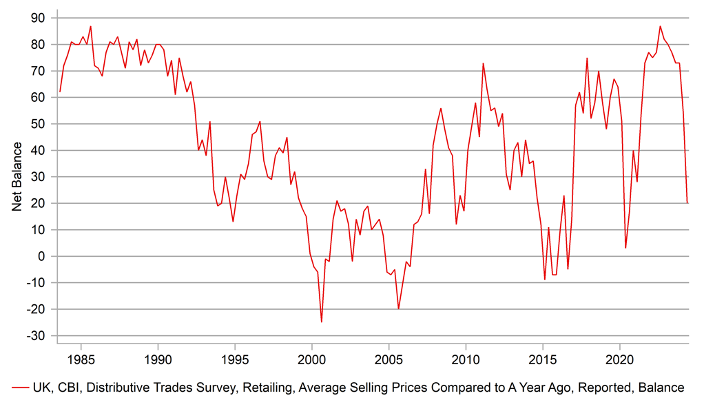 UK RETAILERS REPORT THE SECOND LARGEST DROP IN SELLING PRICES ON RECORD SURPASSED ONLY AT THE START OF COVID IN 2020