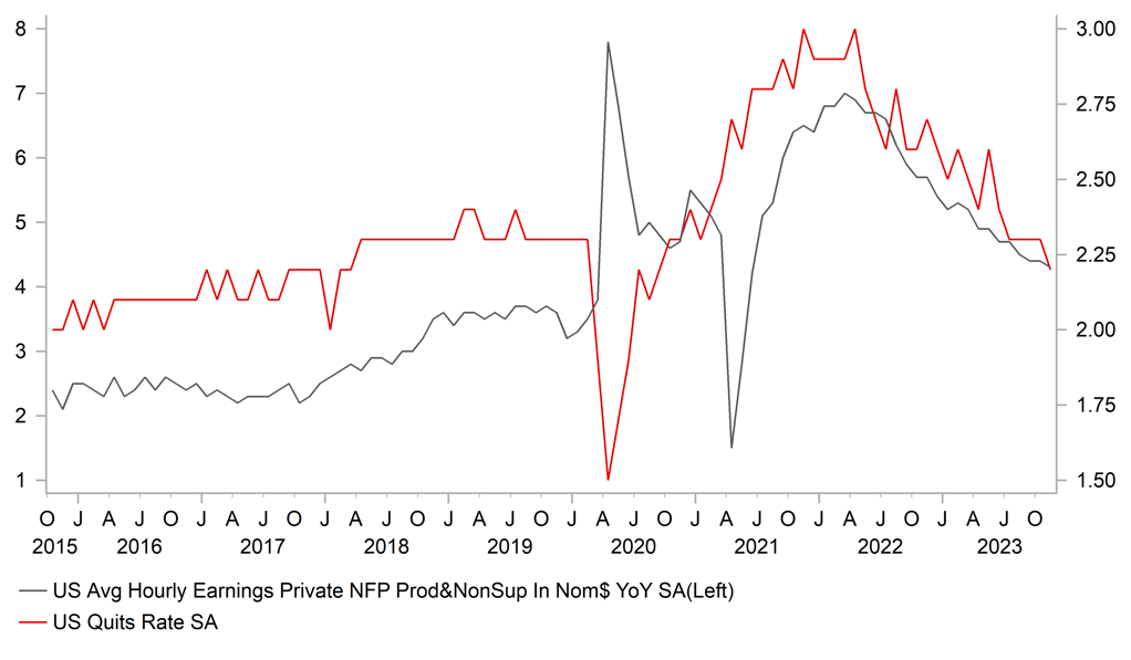 The minutes were always going to highlight the importance of incoming data and today we have the ADP jobs data before the NFP tomorrow. The JOLTS data yesterday certainly confirmed the continued easing of labour demand. Job openings fell from 8.85mn to 8.79mn with hiring hitting its lowest level since April 2020. The quit rate fell to 2.2% underlining the diminishing confidence within the labour market.