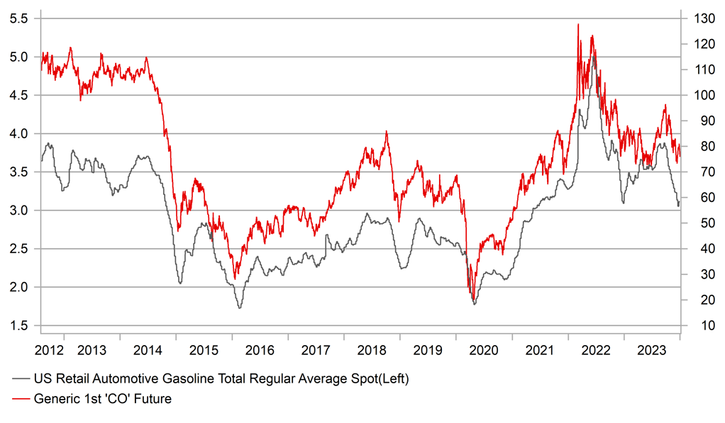 We remain at a price level that is far from raising concerns over global inflation risks. Prior to yesterday’s rally, Brent crude fell below USD 75 p/bl, down from USD 97 p/bl at the end of September. The annual change in crude prices is currently in negative territory. Still, if Middle East tensions escalate further and we see increased conflict incorporating Iran, then we may see some larger spikes higher that may prompt some increased central bank caution. The link between crude oil prices and US retail gasoline prices are tight and a sustained move higher would possibly prompt caution from the Fed. The yen was the big underperformer in FX yesterday and higher energy prices certainly could well have been a factor in the scale of underperformance. Japan’s trade position has improved notably since the easing of the global energy price shock and any re-emergence of energy price volatility could weigh on yen performance although it will be of secondary importance to Fed policy and global inflation developments.