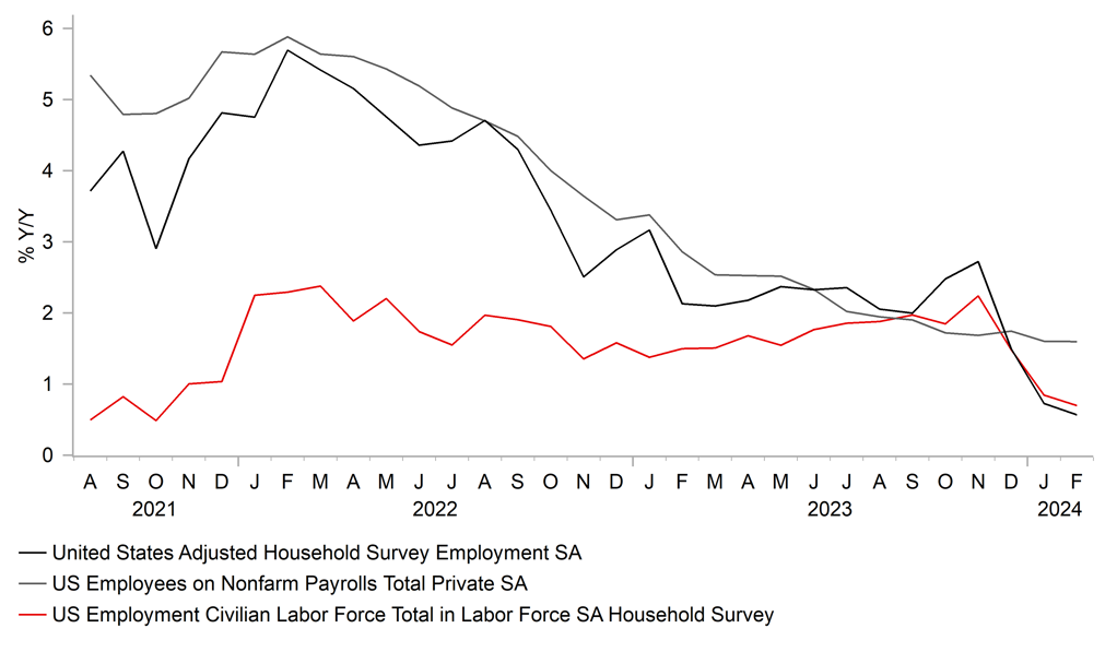 The release later today of the latest nonfarm payrolls for March will also be important for US dollar direction heading into next week. Market participants will be watching closely to see if employment growth continues to remain strong at the start of this year, but more importantly if the US labour market continues to rebalance in line with the Fed’s view that inflation pressures will continue to ease. Employment growth in the establishment survey has averaged 252k/month in the first two months of this year which compares to an average over the last six months of 231k/month. There has been a marked divergence as employment in the household survey has been much weaker, and the unemployment rate has been drifting higher as it hit a fresh high of 3.9% in February and moved further above the cyclical low of 3.4%. The impact from recent nonfarm payroll report releases on the US dollar has been mixed. In the first hour after the nonfarm payroll report was released in March the dollar index declined by -0.13%, which followed a +0.77% gain in January and a -0.20% decline in December. Unless there is a big surprise today, it is more likely that next week’s releases of the latest US CPI and PPI reports for March will be more important for Fed rate cut expectations and US dollar direction through the rest of this month.
