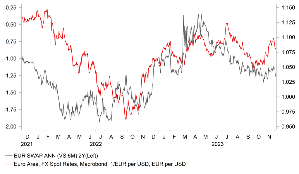 EUR/USD forecasts for H1 2024 in our FX Outlook (here) despite the sharp rally in November. It seems premature to us to assume substantial gains for EUR/USD.