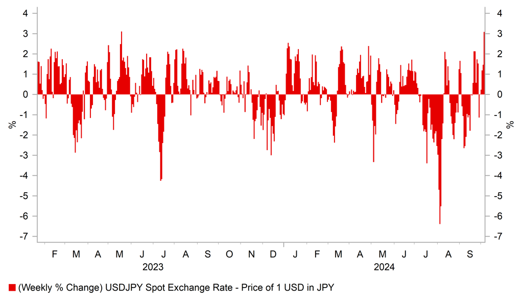 BIGGEST WEEKLY USD/JPY INCREASE SINCE MAY 2023