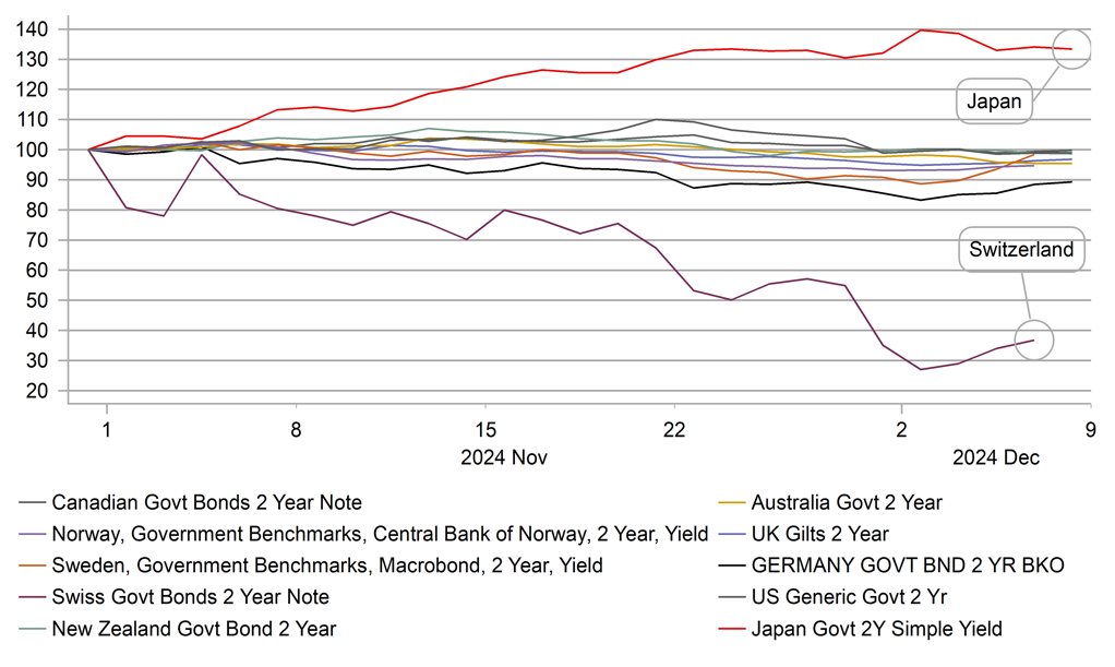 G10 2YR YIELDS REBASED FROM START OF NOVEMBER
