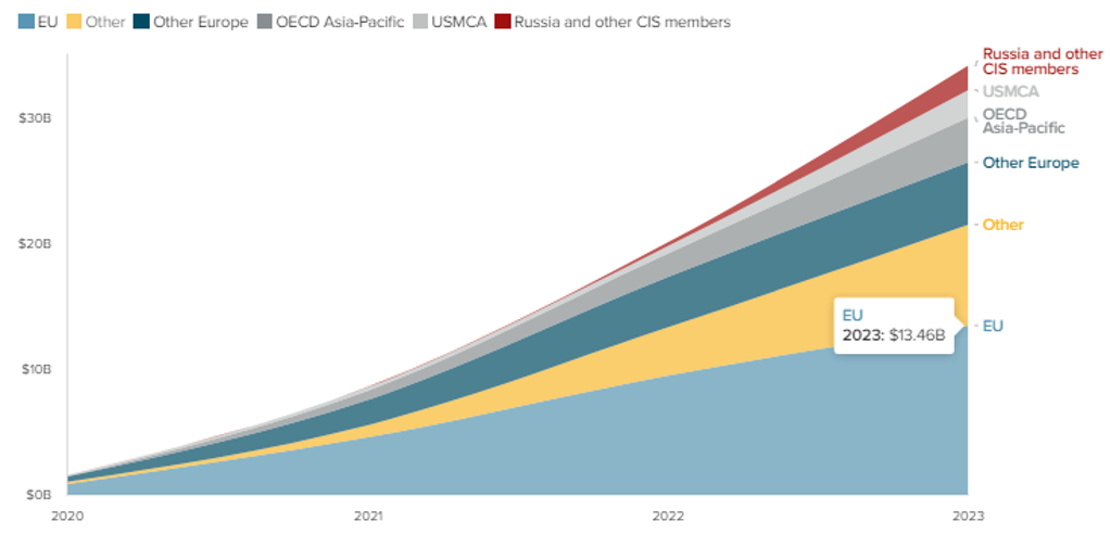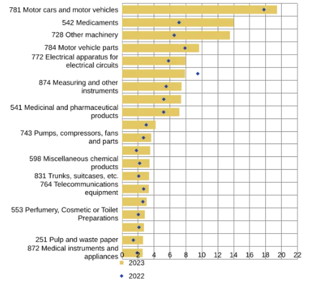 EU MOST EXPORTED GOODS TO CHINA, EUR BILLIONS