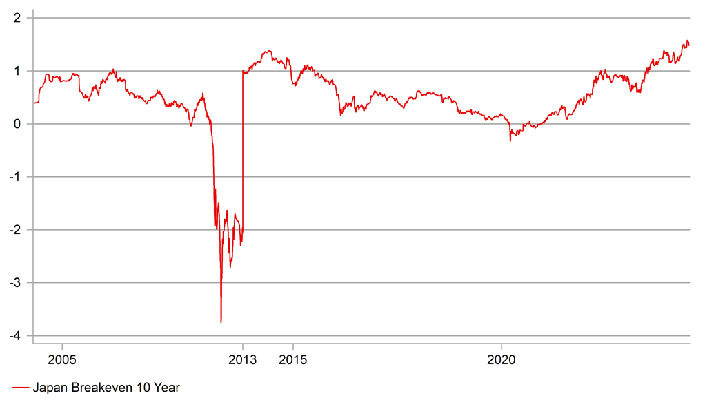 JAPAN 10YR BREAKEVEN THIS WEEK HIT A NEW RECORD HIGH IN BLOOMBERG DATA SERIES