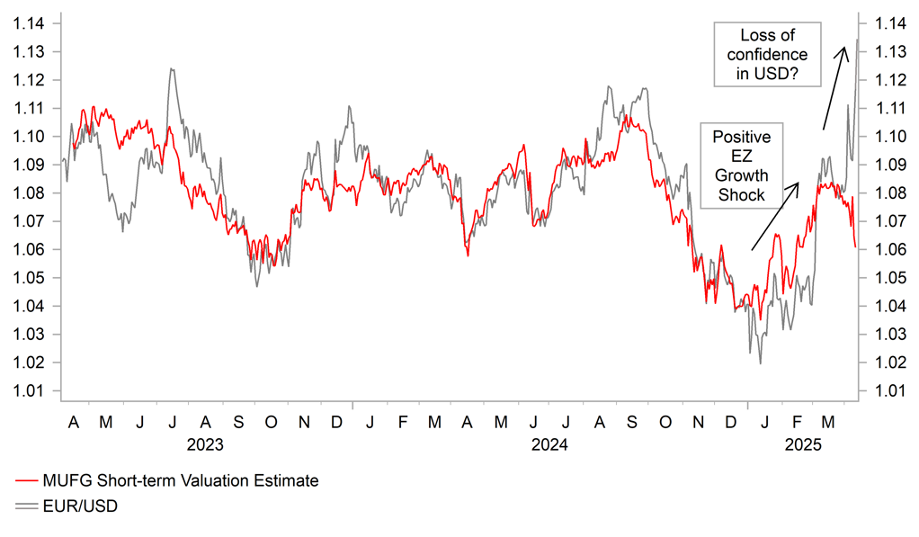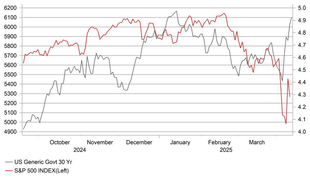 Clients have asked whether the Fed would step in if the bond market sell-off was to continue. We suspect the Fed would be extremely reluctant to act. The turmoil is self-inflicted and without a shift in policy on matters laid out above, the Fed would see limited prospects of success without a meaningful policy shift. QT has already been slowed dramatically to just USD 5bn per month. It could end QT but reverting to QE with inflation risks so high is very unlikely to happen. Disorderly price action and disfunction in the UST bond market is different and if it came to that we could see the Fed acting to bring order and market functioning back to normal standards. FX intervention to support the dollar is also highly unlikely. Although buying the dollar could be seen as more aligned with current Fed concerns over tariff-related inflation risks, the US is not flush with foreign currency to sell and like with UST bonds, intervening without a policy shift would be futile. We certainly believe a rate cut in June could soon be questioned by the markets if curve steepening and dollar selling continues.