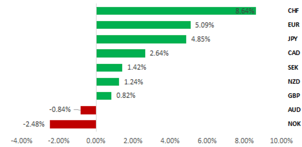 Source: Bloomberg, 14.15 GMT, 11th April 2025 (Weekly % Change vs. USD)