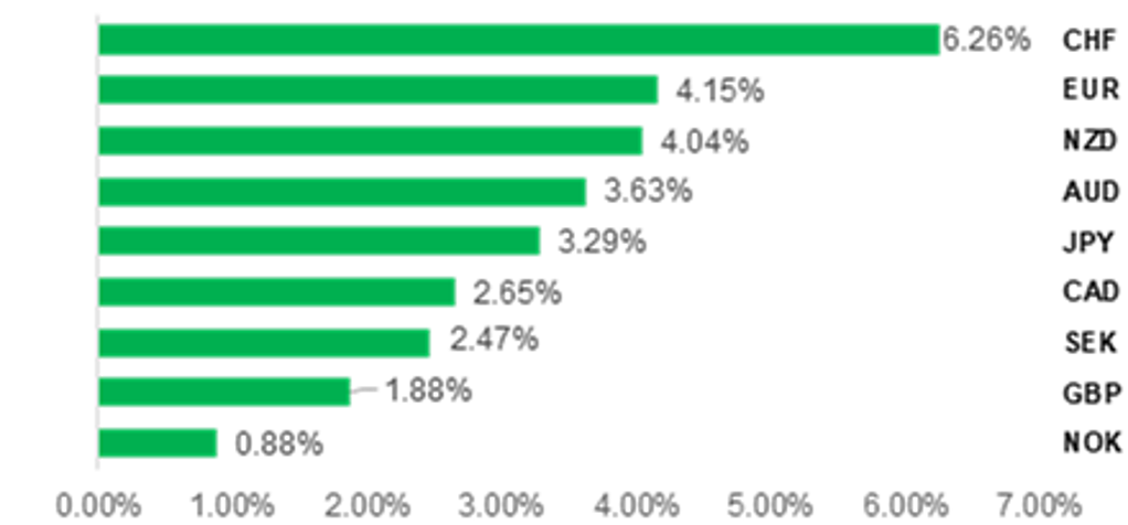 CHF RESUMES UPWARD TREND VS. MAJORS