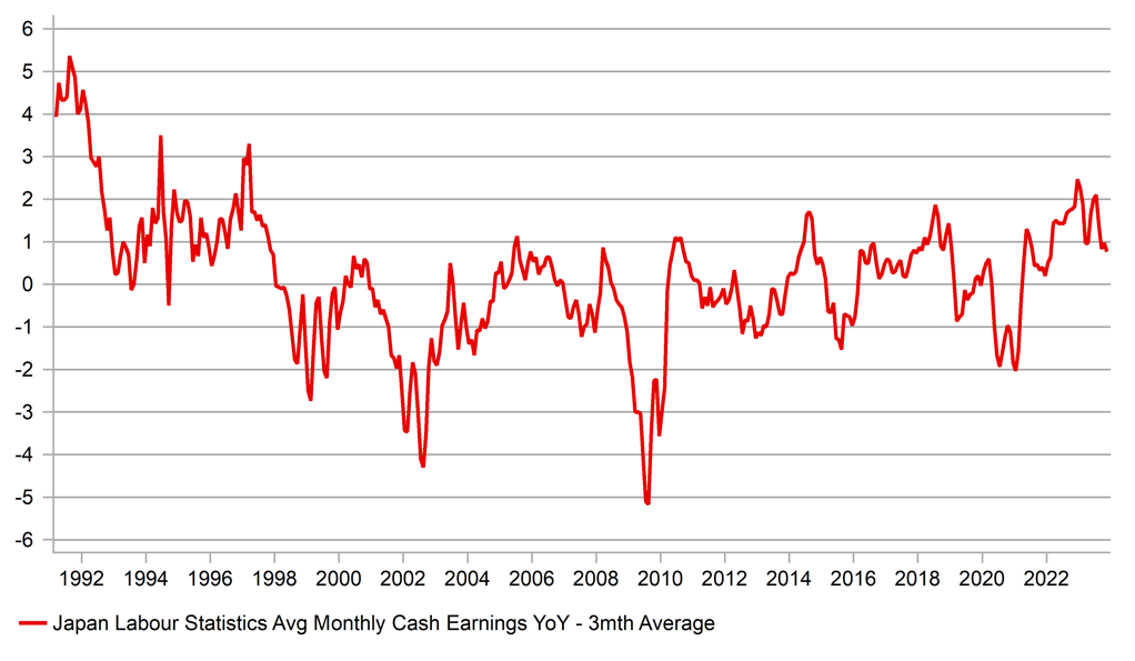 Tokyo CPI data at the start of this week came in modestly weaker at the headline level (2.4% down from 2.7%, expected 2.5%) but the core and core-core readings were as expected. But the more important data these days perhaps is the cash earnings data given the emphasis on wages by the BoJ in determining the sustainability of inflation. In that regard, the cash earnings data is disappointingly unreliable at the moment.