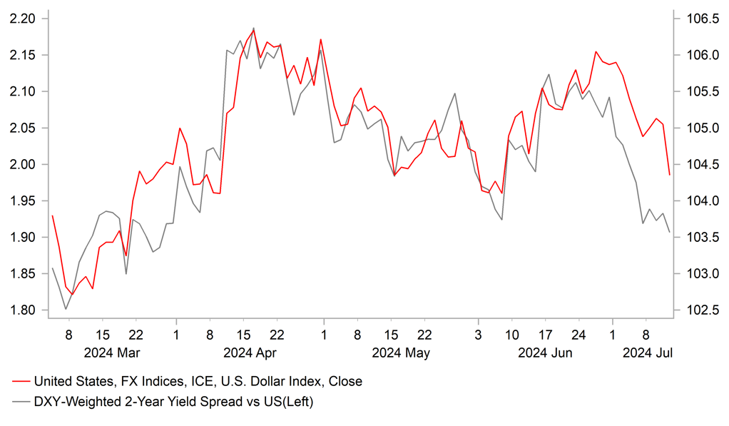 The case for lower US rates and weaker USD has been reinforced by further reassuring evidence that inflation in the US has resumed its decline after the temporary pick-up in Q1. The release of the latest US CPI report revealed that the core inflation surprised to the downside for the third consecutive month in June. Core inflation increased by just +0.065%M/M in June which was the lowest reading since January 2021. Fed Chair Powell’s preferred measure of core services inflation excluding eve fell for the second consecutive month by -0.05%M/M in June following a decline of -0.04%M/M in May. A further positive for the Fed was that housing costs took a step down in June as well indicating that the much anticipated disinflationary impact from rental prices is starting to feed through to the official inflation data although it would need to be followed up in the coming months. Shelter costs increased by +0.17%M/M in June compared to an average of +0.44%M/M in the previous six months. In light of the more compelling evidence of slowing US inflation, we expect the Fed to send a stronger signal that it is close to cutting rates at their next policy meeting at the end of this month. While we would support a rate cut this month, it is unlikely that the Fed will move that quickly and are more likely to set up a cut in September. The developments leave the USD vulnerable to further weakness heading into the summer period. It is creating a favourable set up for carry trades to perform well as market volatility eases.