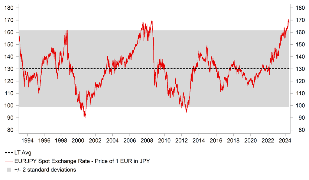 EUR/JPY AT STRETCHED LEVELS, AT GFC HIGHS