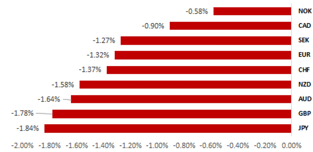 Source: Bloomberg, 12:00 BST, 15th November 2024 (Weekly % Change vs. USD)