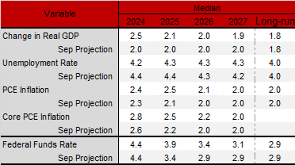 SUMMARY OF ECONOMIC PROJECTIONS – DEC 2024
