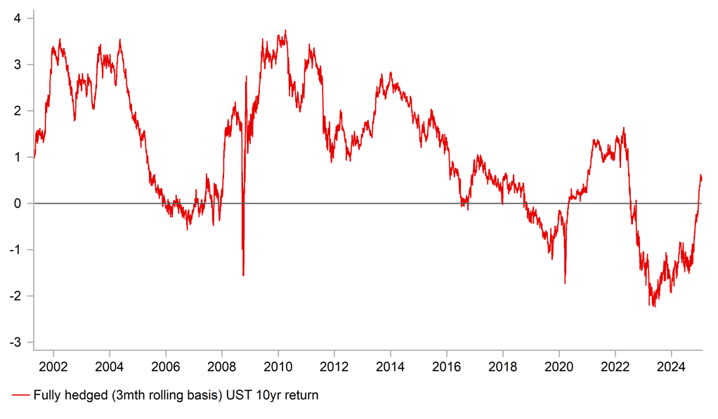 RETURN ON A FULLY-HEDGED 10-YEAR UST BOND HAS TURNED POSITIVE
