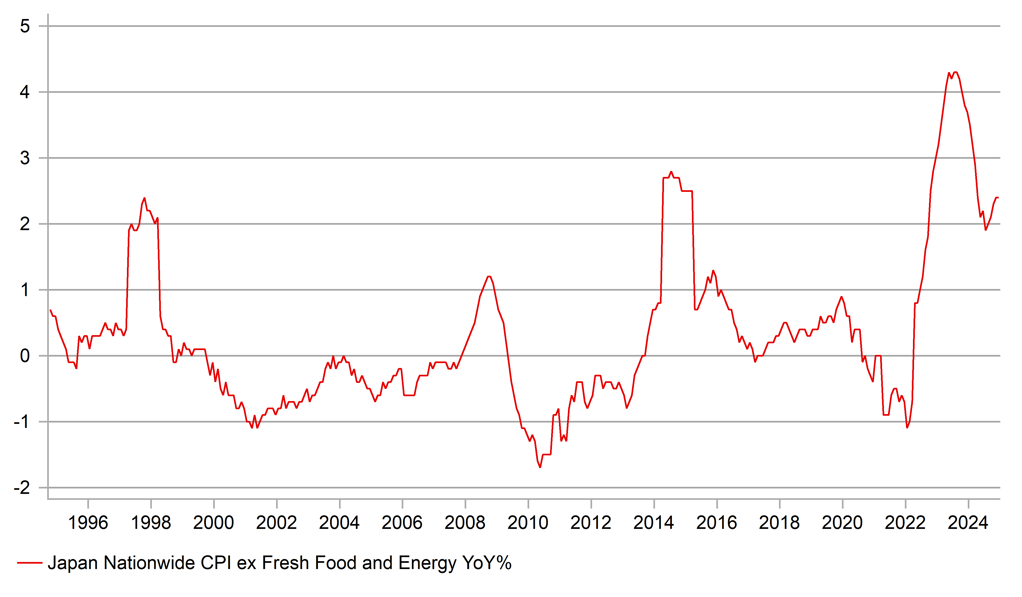CORE-CORE ANNUAL CPI IN JAPAN HAS BEEN AT OR ABOVE 2% TARGET FOR 27MTHS