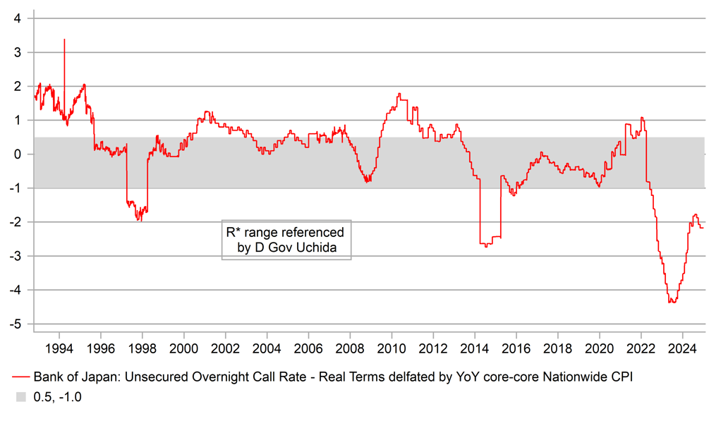 BOJ POLICY RATE IN REAL TERMS STILL WELL BELOW R* RANGE OF ESTIMATES