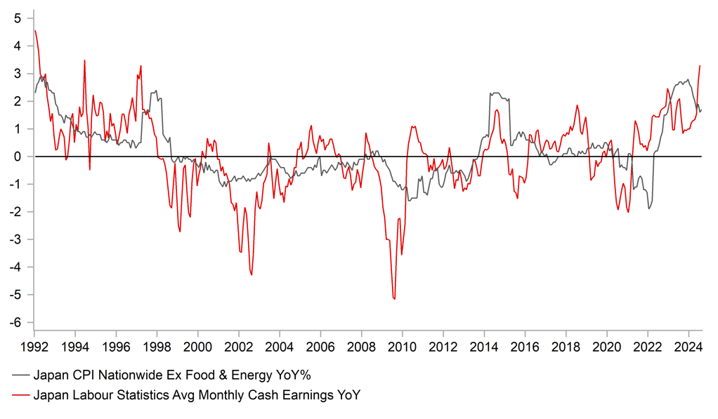 Today saw a large 3.5-big figure drop in USD/JPY fuelled by the confirmation of Shigeru Ishiba winning the LDP leadership election which will be followed by a formal vote in the Diet on Tuesday to approve him as Japan’s new Prime Minister. Today we look at the implications of this change and our initial take is that policy direction will be broadly similar. An economic stimulus package to support household spending could come quickly and may alter expectations of the timing of the next rate hike. The timing of a possible general election will be important too. The focus now will shift to the US jobs report at the end of next week and another weak report would be much more influential on USD/JPY over the coming weeks than this election outcome. We also see an increased risk of back-to-back ECB rate cuts following very weak inflation data today. That will help limit the scale of any US dollar sell-off over the coming weeks, certainly against the euro.