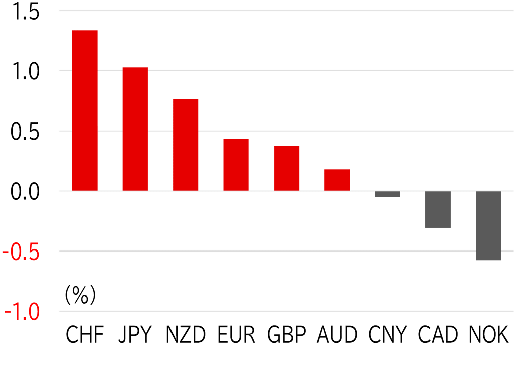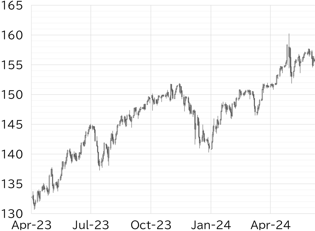 The USD/JPY opened the week at 157.20, then moved lower in European trading hours on Monday 3 June due to a decline in UST yields. The pair fell to the 155 level as dollar selling accelerated after the ISM manufacturing index, announced on the same day in US hours, missed the market's forecast overall. The pair rebounded slightly in the morning of 4 June during the Tokyo session, but yen cross rates led a decline thereafter in the absence of any catalysts and the USD/JPY fell below 155.50, then dipped below 155 after US job openings fell well short of expectations. However, yen selling became dominant during a period of slow trading on the morning of 5 June, and the USD/JPY clawed back the previous day's losses. The USD/JPY recovered to above 156 in European trading hours. The pair rose to around 156.50 after the US ISM non-manufacturing index beat market expectations. On 6 June, the USD/JPY fell back to around 155.50 in the Tokyo session, then recovered to the low 156 level during overseas trading hours. It fell below 156 by the end of the US session, but the downtrend did not gain traction and at the time of writing this report on 7 June the USD/JPY was trading above 155.50 (Figure 1). There were some moves to risk off this week despite the weak dollar environment, as the Mexican Peso and Indian rupee weakened due to elections in those countries during the first half of the week and oil prices declined. It appears that the Swiss franc and the yen were bought on such expectations (Figure 2).