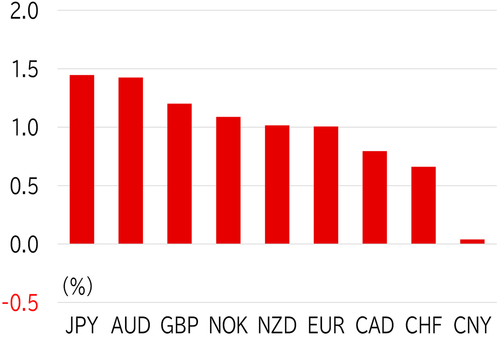 The USD/JPY opened the week at 150.13. The pair rose gradually as the Nikkei 225 hit all-time highs at the start of the week, reaching a weekly high of 150.57 after Atlanta Fed President Raphael Bostic displayed a cautious stance on rate cuts. The Tokyo CPI for February announced on the morning of 5 March was broadly in line with the market's expectations and the USD/JPY lost direction below 150.50 through European trading hours, then fell below 150 in US trading hours as dollar selling gained steam after the ISM Non-Manufacturing Index missed expectations. The USD/JPY appeared to have bottomed temporarily at around 150, but the pair moved gradually lower as the yen strengthened following speculative reports regarding the BOJ's March monetary policy meeting published in European trading hours. Dollar selling also added to this momentum after Fed Chair Jay Powell's closely watched testimony to Congress showed none of the hawkishness that the market had feared. The USD/JPY fell below 149 on the morning of 7 March as the media continued to carry reports on the BOJ's monetary policy. Yen buying then gained momentum in the afternoon as BOJ Governor Kazuo Ueda's parliamentary hearing and BOJ policy board member Junko Nakagawa's press conference appeared positive toward a change in policy, and the USD/JPY fell to the 147 level at the start of the US session. It rebounded to around 148 on a sense of firmness, but Fed Chair Jay Powell's positive stance toward rate cuts at his testimony to the Senate held back upside. The USD/JPY fell to a low for the week of 147.54 on 8 March before writing this report and has been trading below 148 (Figure 1). This week, the dollar weakened against all other G10 currencies while the yen was the strongest performer (Figure 2).