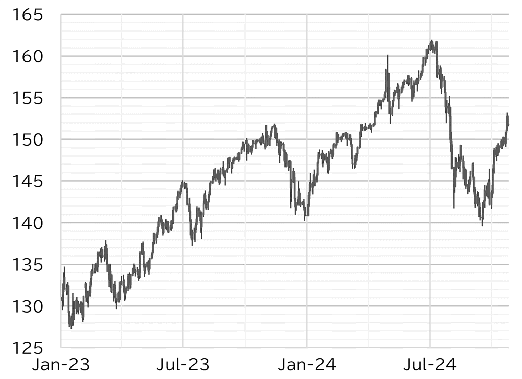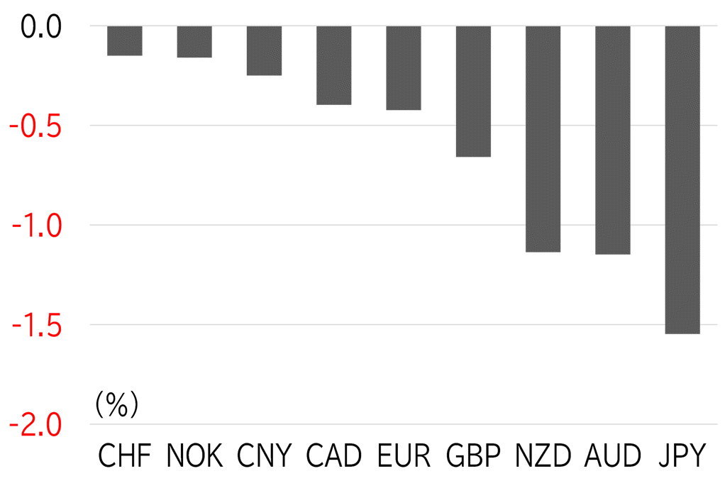 The USD/JPY opened the week at 152.21. The dollar softened on 4 November, which was a public holiday in Japan, due to moves to unwind the Trump trade following reports over the weekend that US presidential candidate Kamala Harris had taken the lead in Iowa. The USD/JPY temporarily fell below 152 but then moved little as the market waited on the results of the election on 5 November. The pair faced downward pressure again through the morning of 6 November in the Tokyo session and fell below 151.50, but the dollar strengthened as the prospect of a Trump victory came into view with voting closing in Eastern US states and the USD/JPY rose to 154 by around noon. The pair pulled back to below 153.50, but then climbed to a high for the week of 154.71 on the morning of 7 October in Tokyo trading hours, with the dollar strengthening across the board as some media outlets called the race for Trump after he won the key battleground state of Pennsylvania. However, the USD/JPY then became top-heavy as the rise in UST yields lost momentum. The dollar weakened across the board in US trading hours and the USD/JPY fell below 153. The FOMC moved to cut rates by 25bp as had been widely expected, and Fed Chair Jay Powell said the outcome of the election will have no effect on the Fed's outlook or monetary policy stance in the near term. The market's reaction was muted in the absence of an anticipated dovish tilt by the Fed, and the USD/JPY was trading around 152.50 at the time of writing this report on 8 November (Figure 1). In the end, the dollar, yen, and euro were soft among G10 currencies this week (Figure 2).