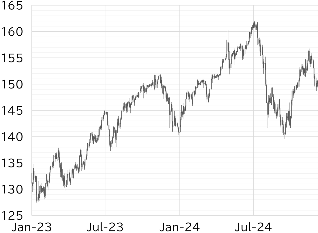 The USD/JPY opened the week at 149.89, rising to around 150 on Monday 9 December. Yen selling picked up after Prime Minister Shigeru Ishiba said Japan has not yet escaped deflation and China announced an aggressive fiscal and monetary policy stance, and the USD/JPY advanced to below 151.50 in US trading hours as the dollar strengthened along with a rise in UST yields. The pair rose to below 152.50 on 10 December as the dollar was bought in the absence of any notably news after European investors entered the market and as reports of a Japanese financial institution buying a US peer triggered yen selling. The USD/JPY fell back to below 151.50 on 11 December along with a fall in share prices and a decline in yen cross rates following news that Chinese authorities had approved a weaker yuan. However, yen selling gained momentum after Bloomberg reported that the BOJ could postpone a rate cut at its upcoming monetary policy meeting, and the USD/JPY swiftly rose to above 152.50. The pair fell back to around 152 as UST yields declined and upside was checked after the US CPI for November came in broadly in line with expectations. The USD/JPY subsequently tested 152 several times, but was bottom-firm and remained strong through to the close on 12 December along with a further rise in UST yields. The pair had recovered to above 153 at the time of writing this report on 13 December (Figure 1). The dollar was strong overall among G10 currencies this week. European currencies were reasonably strong, while the AUD, which is sometimes seen as a proxy for the CNY, was weak (Figure 2).