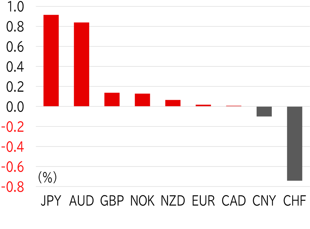 The USD/JPY opened the week at 142.48. It rose to a high for the week of 143.80 on 9 September, supported by higher UST yields and a rise in the Nikkei 225 in the afternoon session. The pair became top-heavy and fell back below 143 after the rise in UST yields stopped. A similar pattern played out on 10 September, with the USD/JPY rising past 143.50 through European trading hours before falling back in US time. The yen strengthened amid a fall in oil prices and the USD/JPY fell to around 142.50. On 11 September, the dollar weakened across the board in the morning during the Tokyo session after Vice President Kamala Harris beat Donald Trump in the televised US presidential debate. The USD/JPY fell to 140.71, below the 5 August low of 141.68. The US CPI released on the same day exceeded market expectations, and the USD/JPY bounced back to around 142.50. The USD/JPY rose to around 143 on 12 September. However, it was unable to advance past this level and faced increased downward pressure after the US PPI and new jobless claims announced in US trading hours came in weaker than the market had expected. In addition, the WSJ reported that the Fed could cut rates by 50bp at next week's FOMC meeting, resulting in the dollar weakening across the board, and the USD/JPY fell below 141 again through 13 September. The USD/JPY had fallen to a low for the week of 140.65 at the time of writing this report (Figure 1). The dollar was weak among G10 currencies this week, with the yen and Australian dollar the strongest performers (Figure 2). The RBA's caution about cutting rates may have made the Australian dollar relatively preferred since the Fed is poised to cut rates.