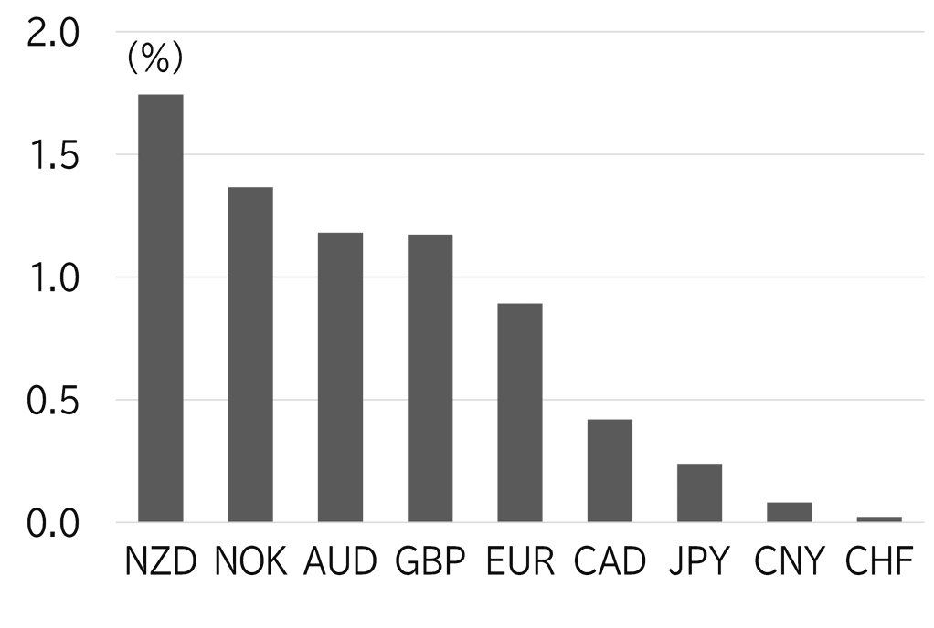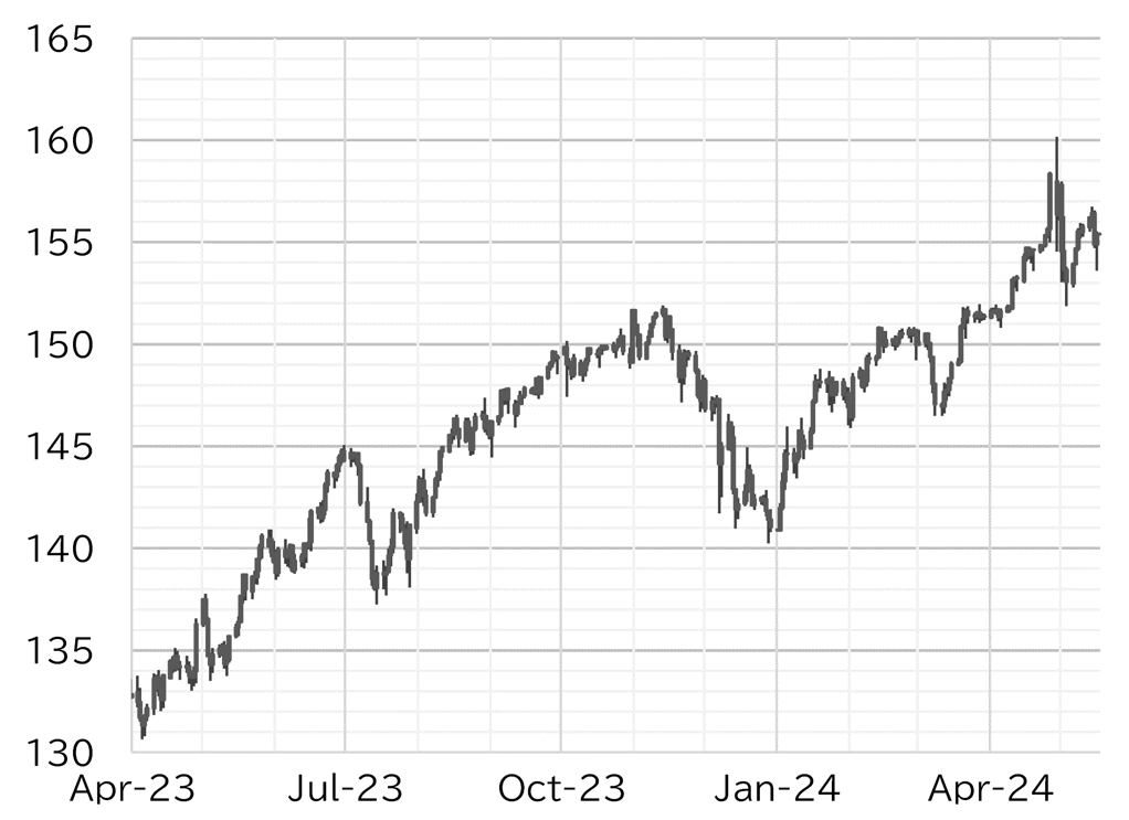 The USD/JPY opened the week at 155.85. JGB yields rose, mainly in the long-term sector, after the BOJ announced it would reduce purchases of 5-10y JGBs in its open market operations. The USD/JPY fell to around 155.50 but yen buying was not sustained, and the pair rose to the low 156 level as the NY Fed's data on consumer inflation expectations came in higher than the market had forecast. The USD/JPY rose to the high for the week of 156.80 on 14 May after growth in the PPI for April announced in US trading hours beat the market's forecast on a MoM basis, but 157 did not come into sight. In a speech on 14 May, Fed Chair Jay Powell said it was unlikely that the next move the Fed makes would be a rate hike, that it would take longer than expected to bring inflation down, and that the Fed will need to be patient and maintain rates at current levels for now. The speech did little to move the USD/JPY since it was basically in line with his comments at the press conference following the recent FOMC meeting. After that, the market remained in wait-and-see mode ahead of the April CPI report. On 15 May, the closely watched US CPI report showed a slowdown in both YoY and MoM growth, and slower growth in the supercore inflation reading, which measures services inflation excluding housing. US retail sales for April announced at the same time also missed the market's forecast. As a result, UST yields declined and the dollar softened. The USD/JPY fell to 155, bounced back above 155.50, and was then pushed down to below 155. The pair softened from the morning on 16 May and fell below 154 as the previous day's dollar selling continued, hitting the low for the week of 153.60 before gradually rising. Several US economic indicators showed a downturn in sentiment this week, but strong growth in the import price index for April beat the market's forecast, which worked to drive up UST yields and supported a rise in the USD/JPY to the155 level. The pair was trading below 155.50 at the time of writing this report (Figure 1). The dollar softened against all major currencies this week due to a decline in UST yields. The Swiss franc was relatively weak amid a shift to risk on and a rise in US share prices (Figure 2).