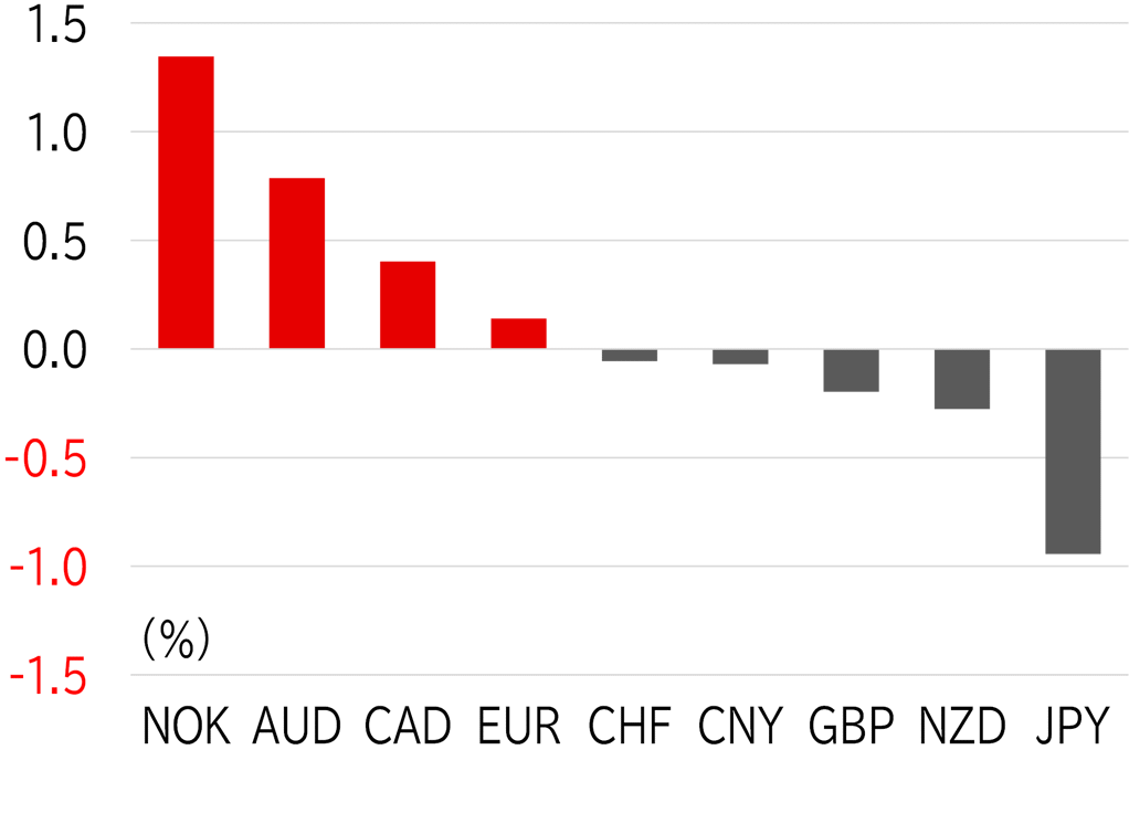 The USD/JPY opened the week at 157.52. It traded around 157.50 in the Tokyo session on 17 June amid a lack of any notable news, then fell below 157.50 in European trading hours as yen selling picked up steam due to concerns about the political situation in France following the EU elections. However, a subsequent rise in UST yields drove dollar strength putting upside pressure on the USD/JPY, which rebounded to nearly 158. On 18 June, the yen strengthened slightly in the morning due to BOJ Governor Kazuo Ueda's parliamentary hearing, but the USD/JPY rose above 158 in the afternoon as a hawkish shift by the RBA drove Australian dollar buying. The USD/JPY fell to around 157.50 after US retail sales for May came in below the market's forecast. It remained bottom-firm at that level, then gradually rose back to above 158 on 19 June which was a holiday in the US. On 20 June, the USD/JPY climbed gradually in the Tokyo session due in part to calendar factors. In European trading hours, the Swiss National Bank unexpectedly cut rates, sparking dollar strength and a rise in the USD/JPY. In US trading hours, Minneapolis Fed President Neel Kashkari suggested it would take one to two years to achieve the inflation target, resulting in a sharp rise in UST yields and a stronger dollar. The USD/JPY rose intermittently to nearly 159. On 21 June, it rose past 159 in the morning for the first time since 29 April. It was trading above 158.50 at the time of writing this report (Figure 1). Commodity currencies were strong this week due to a continued rise in oil prices, with the dollar in the middle of the pack. The yen was the worst performer (Figure 2).