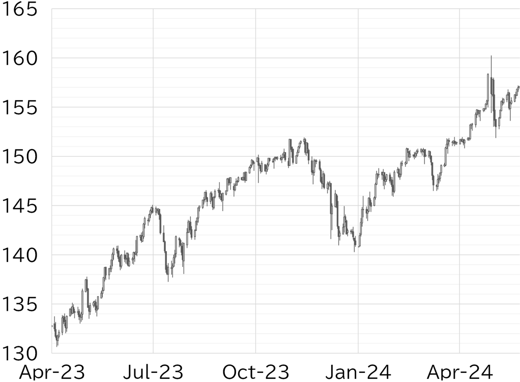 The USD/JPY opened the week at 155.79. The pair became top-heavy at the 155 level on Monday 20 May, partly due to expectations of a rise in long-term JGB yields but rose above 156 after Atlanta Fed President Raphael Bostic said the Fed might have to consider an interest rate hike. Hawkish comments from other senior Fed officials worked to drive the USD/JPY up to around 156.50 through Tokyo trading hours on 21 May. However, the pair temporarily fell back to the upper 155 level as comments from Fed Governor Christopher Waller were not as hawkish as had been expected. Nevertheless, the pair continued to inch higher from the morning of 22 May, rising to around 156.50. The USD/JPY then moved even higher as the dollar strengthened across the board following the announcement of the minutes of the FOMC meeting held on 30 April – 1 May. The pair treaded water just before 157 on 23 May, but then rose sharply to the low 157 level following an unexpectedly strong US PMI reading, with the Composite PMI Output Index rising to the highest level since April 2022. The USD/JPY has recovered from a fall over the long holidays to reach new highs, and at the time of writing this report on 24 May, it is becoming top-heavy amid concerns of intervention by the Japanese authorities (Figure 1). The dollar strengthened almost across the board this week, while the sterling was relatively strong due to concerns about the risk of inflation. Meanwhile, commodity currencies such as the Canadian dollar and the Australian dollar were weak due in part to a softening in crude oil prices (Figure 2).