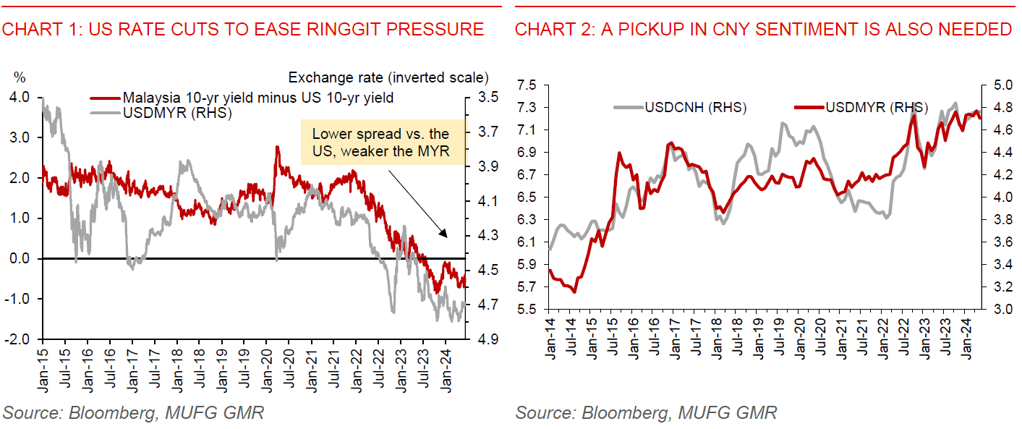 - The diesel subsidy rationalisation move on 10 June will help marginally improve government finance (+0.2% of GDP), while having only limited impact on inflation (+0.1ppt). The impact on consumers will also be softened by the government’s offset measures. In terms of FX impact, we think this policy has not moved the needle on our short-term outlook for the Malaysian ringgit. We maintain our forecast for the ringgit to remain weak at around 4.75 against the US dollar in the next 3 months. Ringgit reprieve will likely only come when the US Fed lowers interest rates and sentiment towards CNY improves.