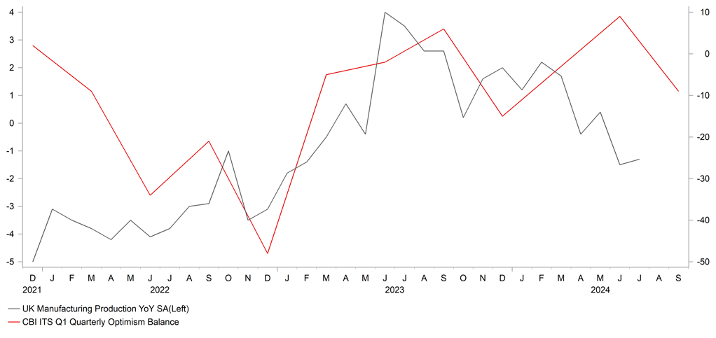 CBI BUSINESS OPTIMISM VS MANUFACTURING OUTPUT