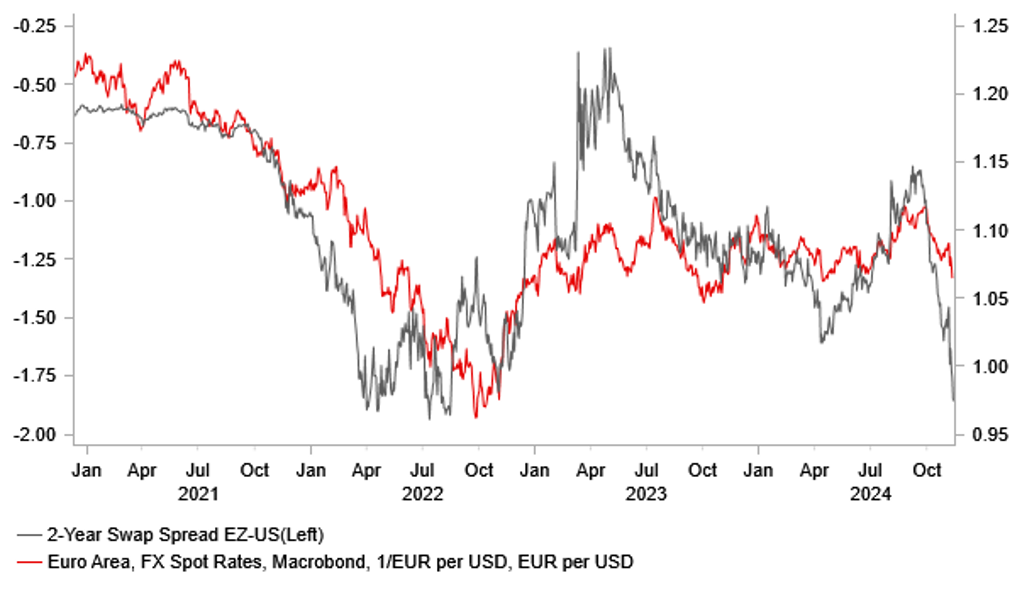 EUR/USD VS 2-YEAR EZ-US SWAP SPREAD